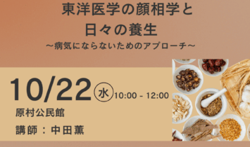 【10月22日】東洋医学の顔相学②と 日々の養生 ~病気にならないためのアプローチ~伝わる知恵袋2025 10月の講座です。山梨県北杜市須玉にある中田医院 中国医学研究所の院長である中田先生を講師にお招きして【顔相学】と、東洋医学の基本でもある【病気にならないようにする養生と治療】を、お話ししていただきます。漢方では①病気にならないようにする…