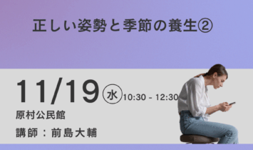 【11月19日】正しい姿勢と季節の養生②上半身の姿勢の作り方・秋・初冬の気功の養生法伝わる知恵袋2025 11月の講座です。八ヶ岳の麓の富士見町で、『気功教室・気功整体・薬膳素食教室』を中心に活動している前島大輔さんを講師にお招きして正しい姿勢と季節の養生についてお話と実践を教えていただきます。今回は上半身の姿勢を中心に、秋・初冬の気功の養生法を教わります。…