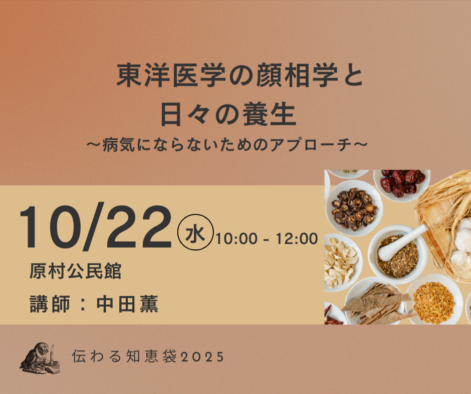 【顔相学】と、東洋医学の基本でもある【病気にならないようにする養生と治療】を、お話ししていただきます。