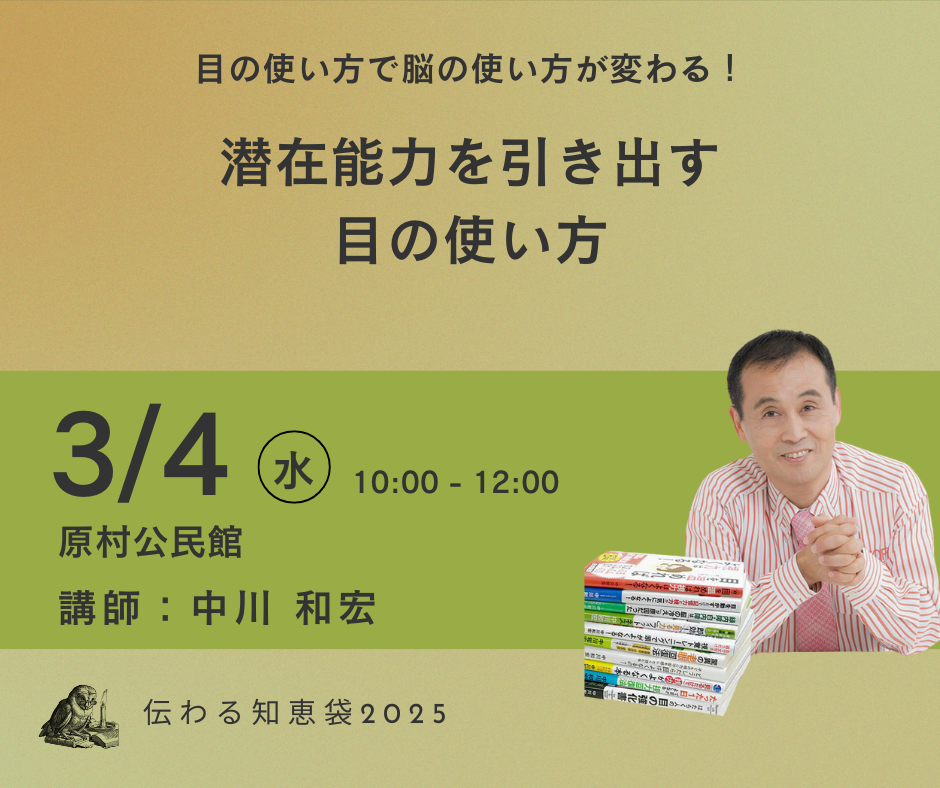 目と脳の関係から視力を回復させるアプローチで、40年以上の実績をお持ちのビジョンサロン創業者 中川和宏さんを講師にお招きして目と脳の使い方の関係性や、潜在能力を引き出す使い方、日常で取り組める目のトレーニングなどを中心にお話をしていただきます。様々な実例をもとにお話をいただきますのでお楽しみに!